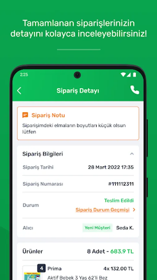 - You can be informed about orders with instant notifications, and you can easily manage order preparation processes.