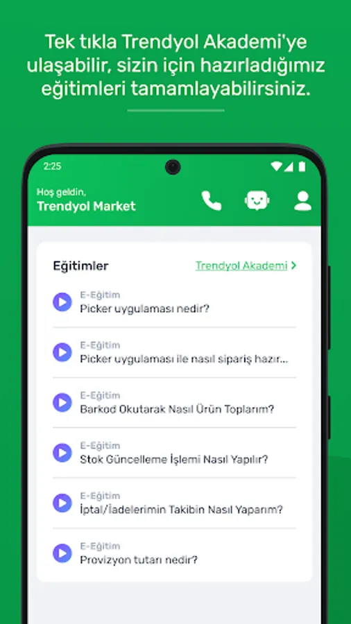 - You can access Trendyol GO Academy with one click and complete all the trainings that will improve your operation.