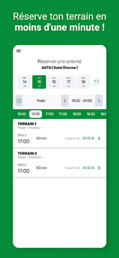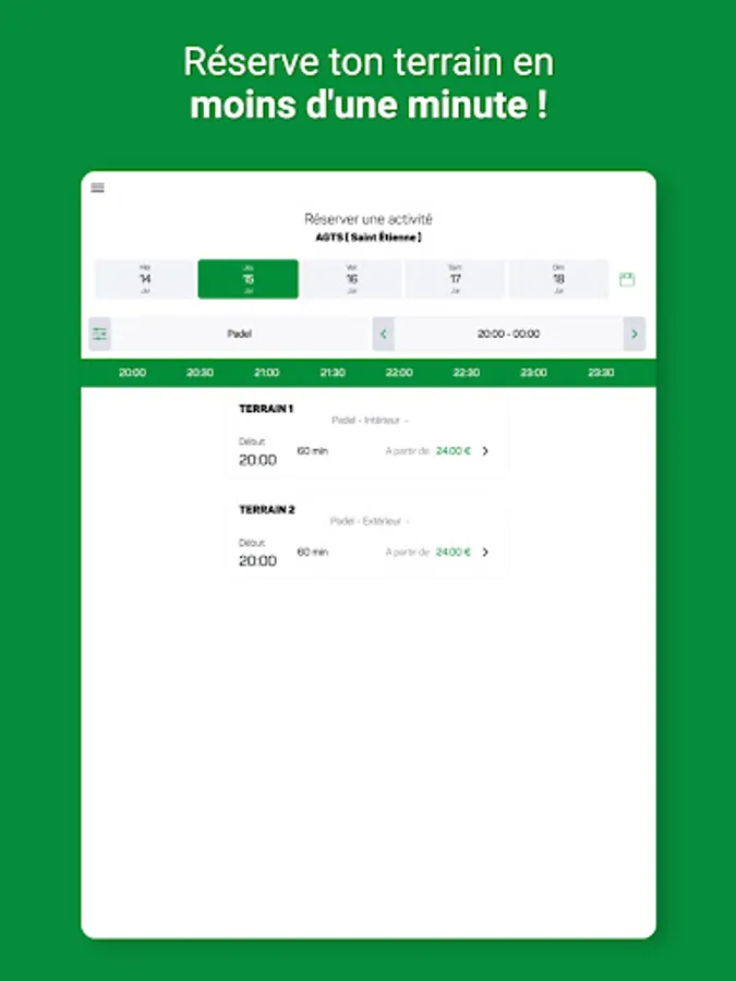 No more booking hassle! With the application you just have to access the available slots and choose one. The club will then automatically receive your reservation.