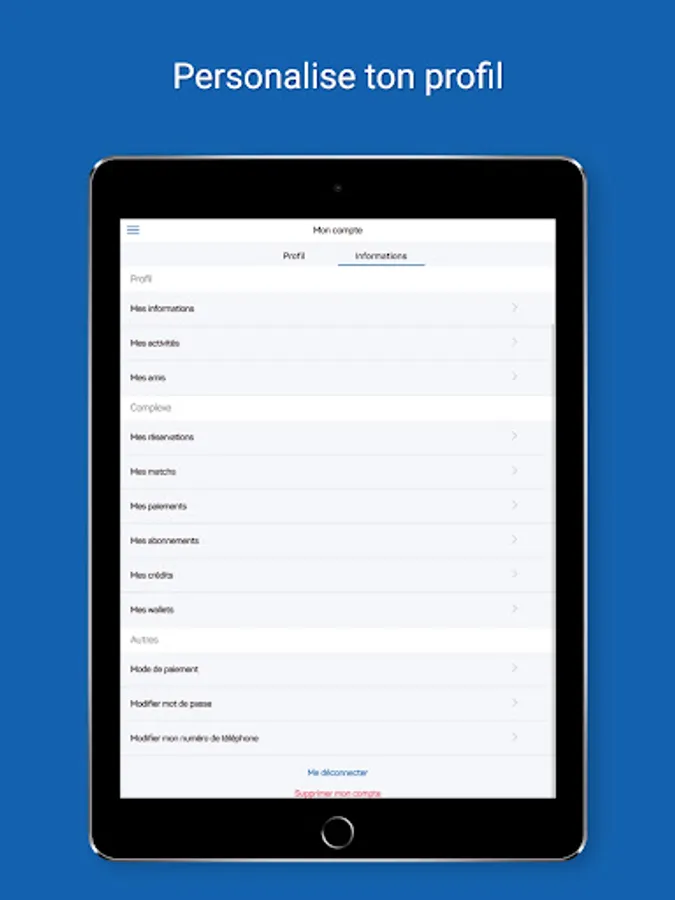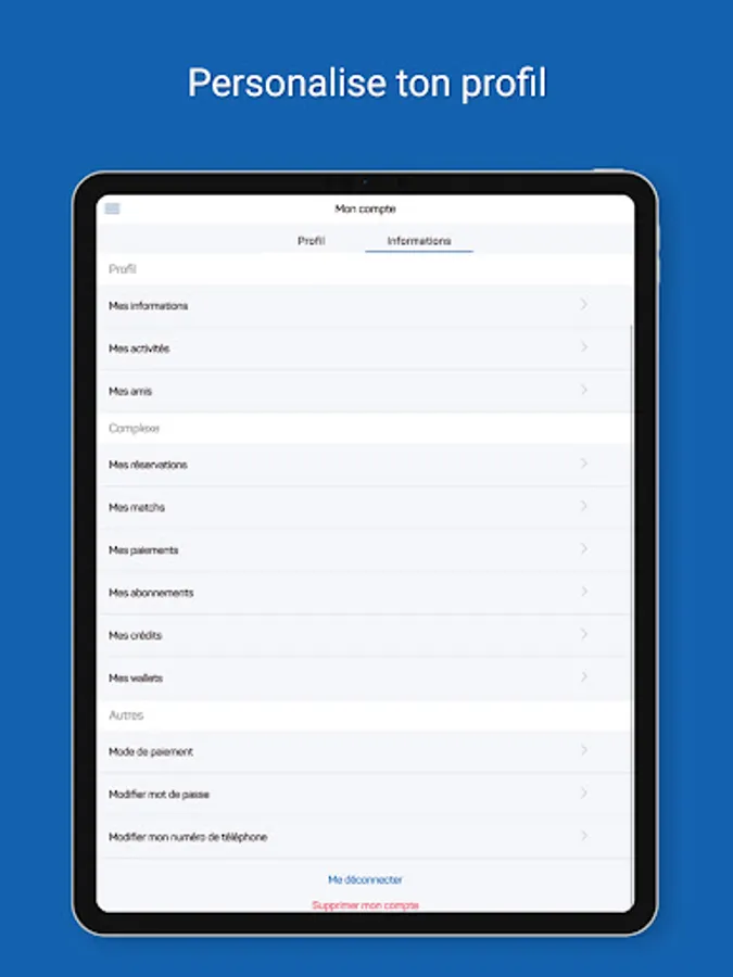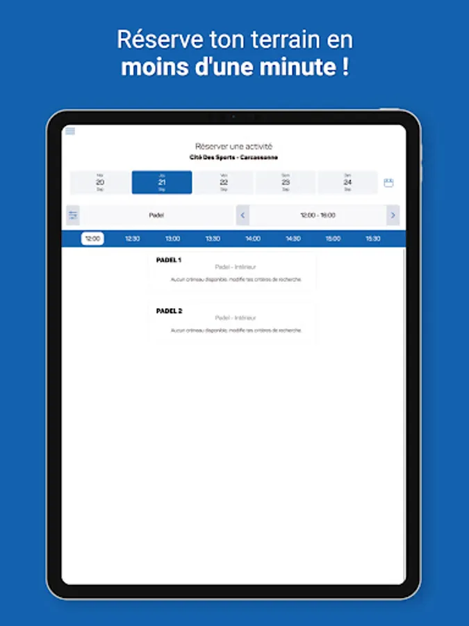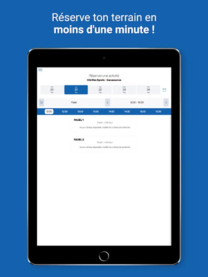 No more hassle of booking! With the application you just have to access the available slots and choose one. The club will then automatically receive your reservation.