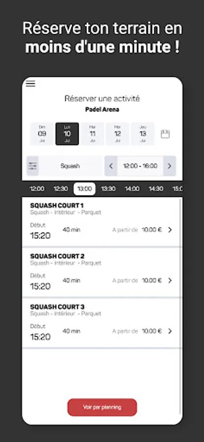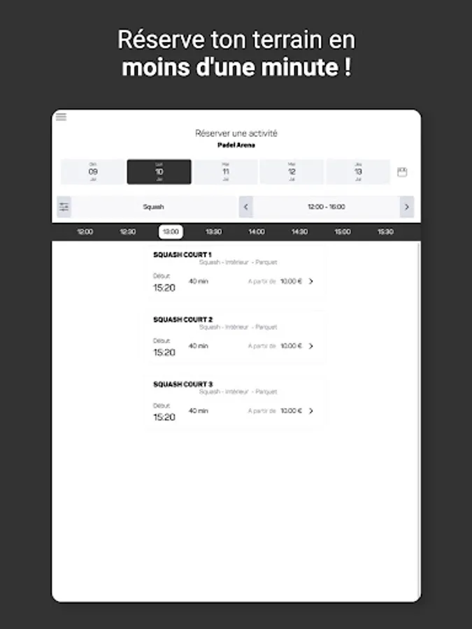 No more booking chore! With the application you just have to access the available slots and choose one. The club will then automatically receive your reservation.