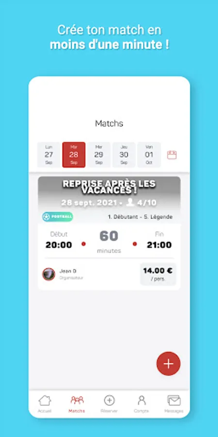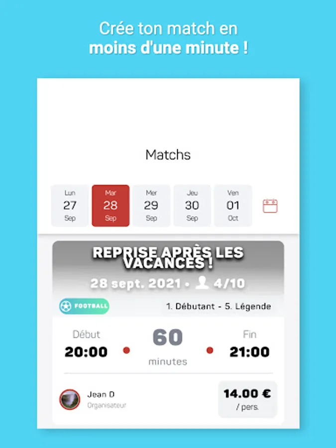 Rien de plus simple pour organiser tes matchs : 2 clics et c'est fait !