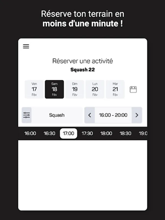 No more booking hassle! With the application you just have to access the available slots and choose one. The club will then automatically receive your reservation.