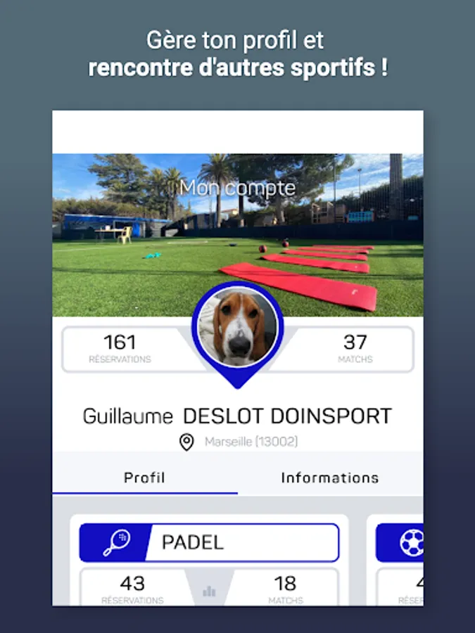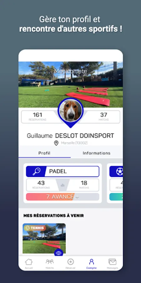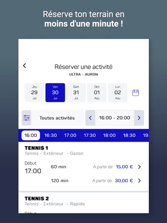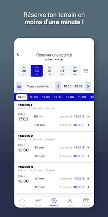 No more booking chore! With the application you just have to access the available slots and choose one. The club will then automatically receive your reservation.