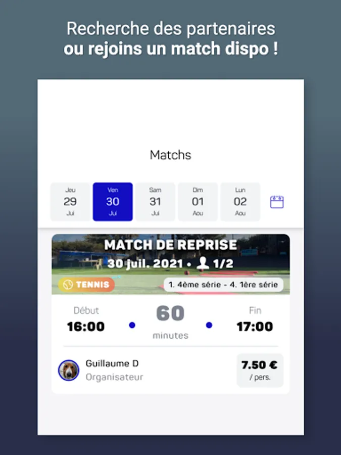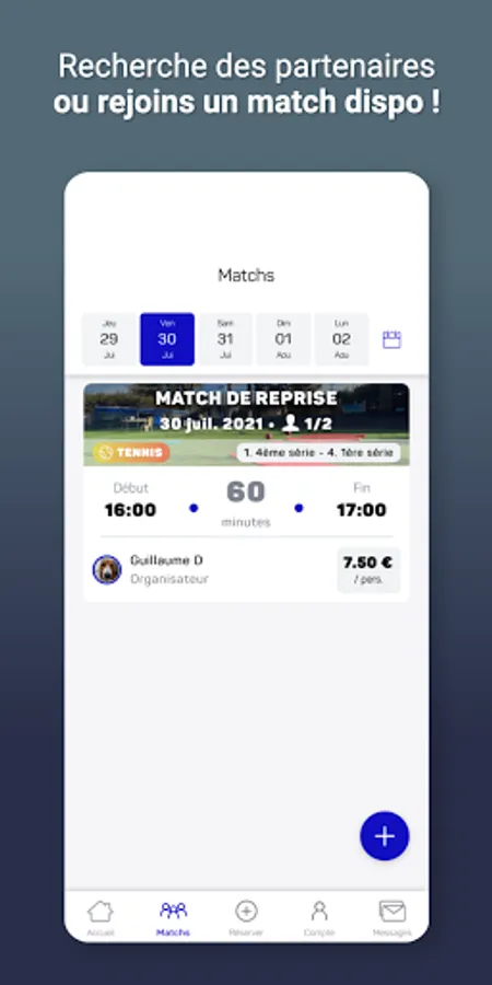 Consult the matches offered by other players. As soon as you've found the match you need, register!
