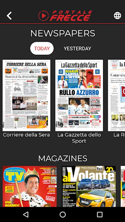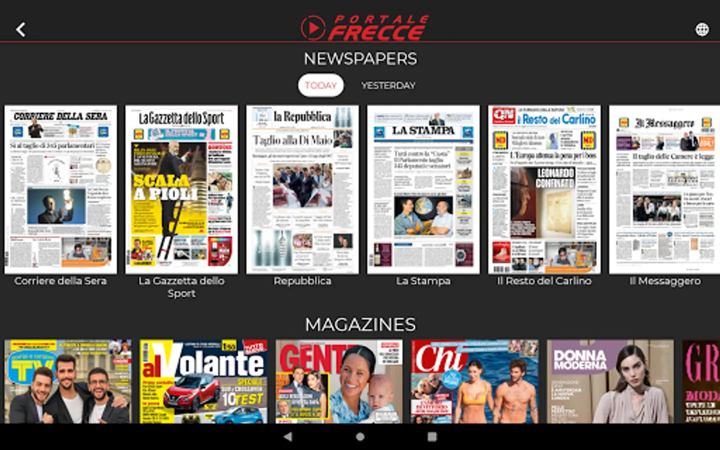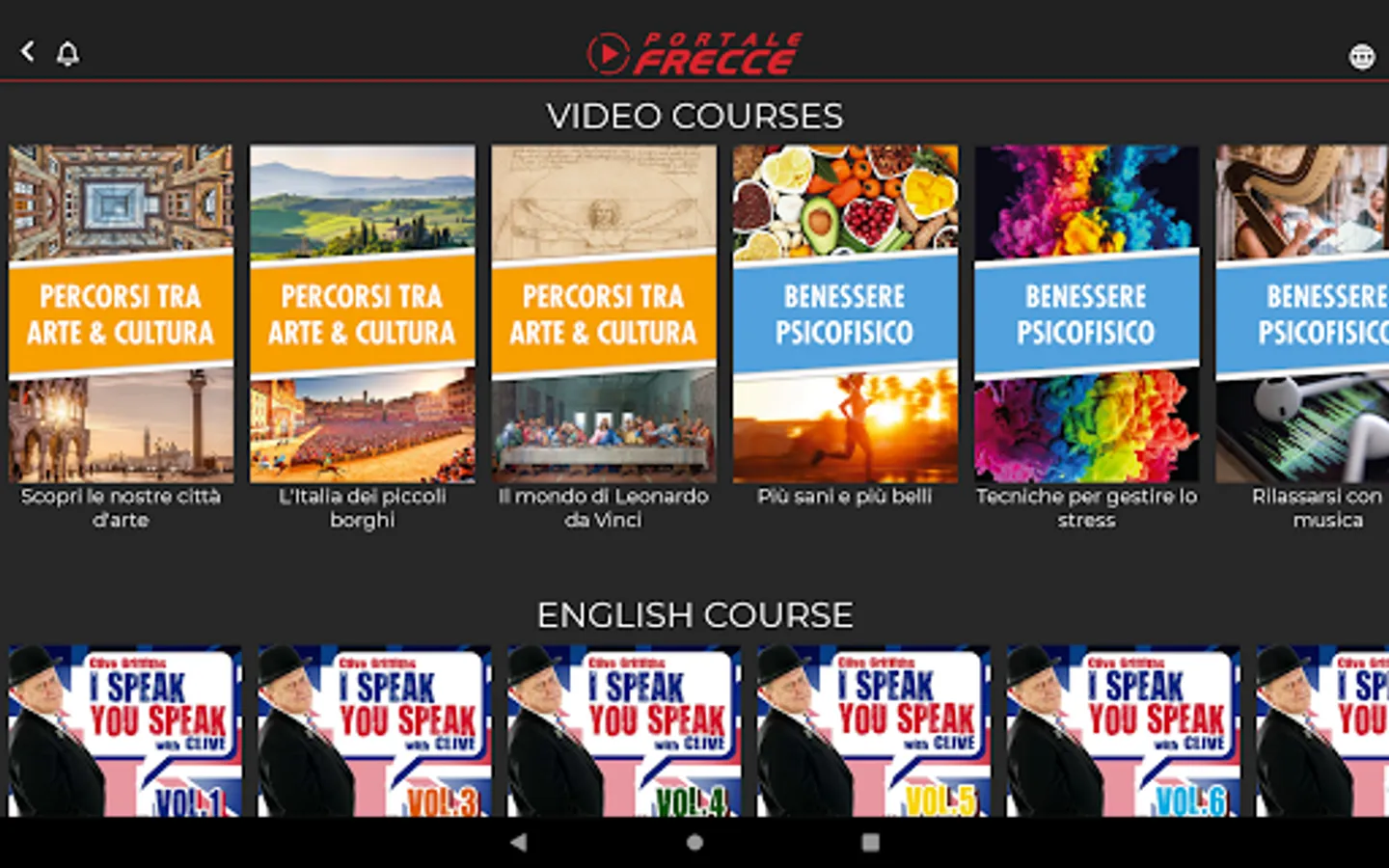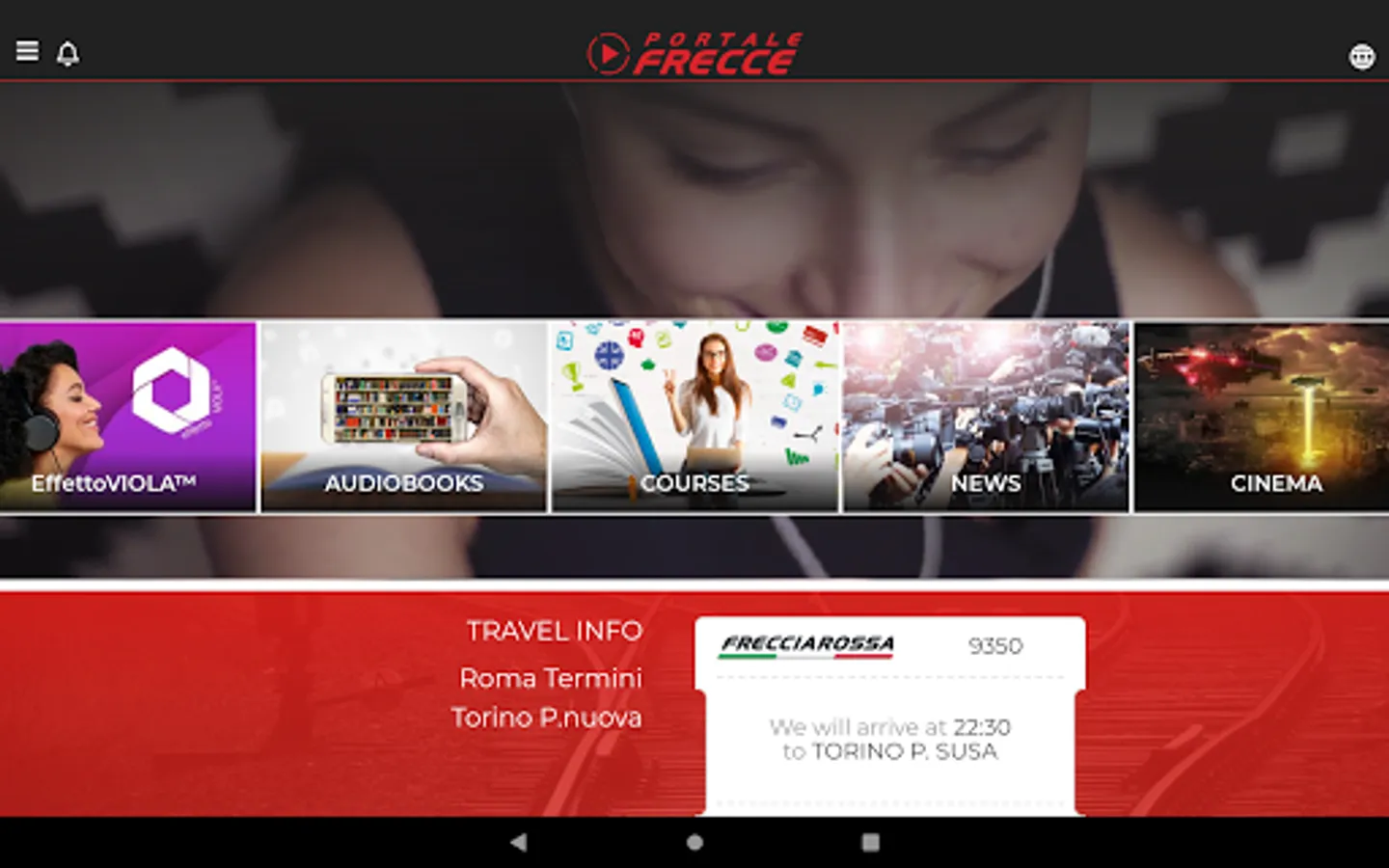 Download the app to preview the content catalogue. The services can be used only if connected to the WiFiFrecce network.
