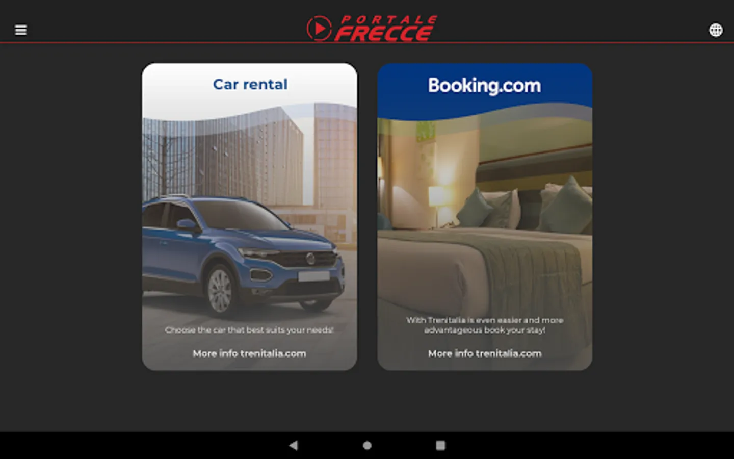 The Portale FRECCE app is free and can be used on Frecciarossa and Frecciargento trains or in FRECCIAClub e FRECCIALounge lounges by connecting to the WiFi network.