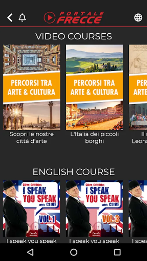 Italian and international movies, TV series and programs, cartoons and kids shows, newspapers, weekly and monthly magazines, books and touristic guides, games, songs and music videos, travel podcast, English-Italian language lessons, audiobooks and live information about your trip.