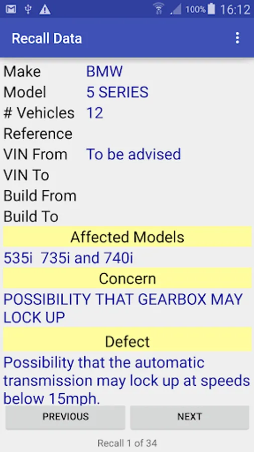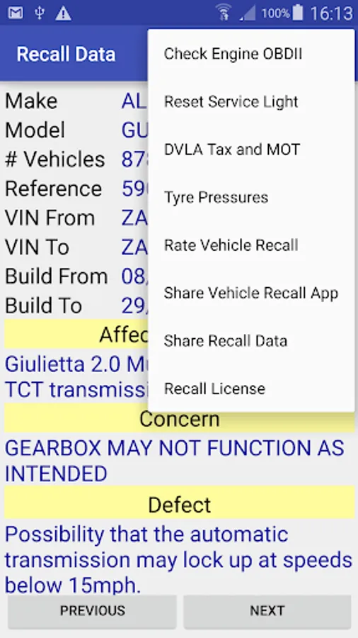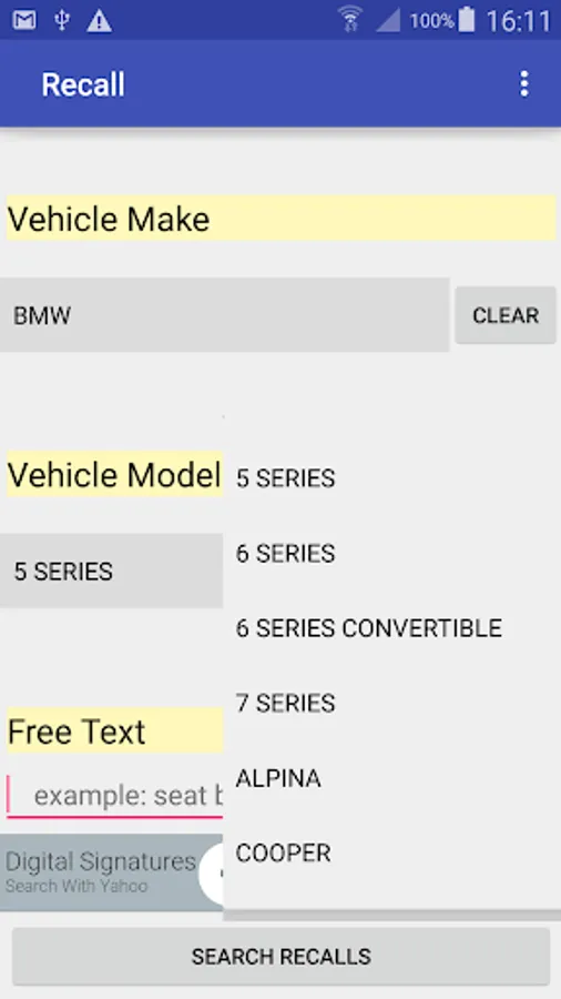 Up to date vehicle recall check application.