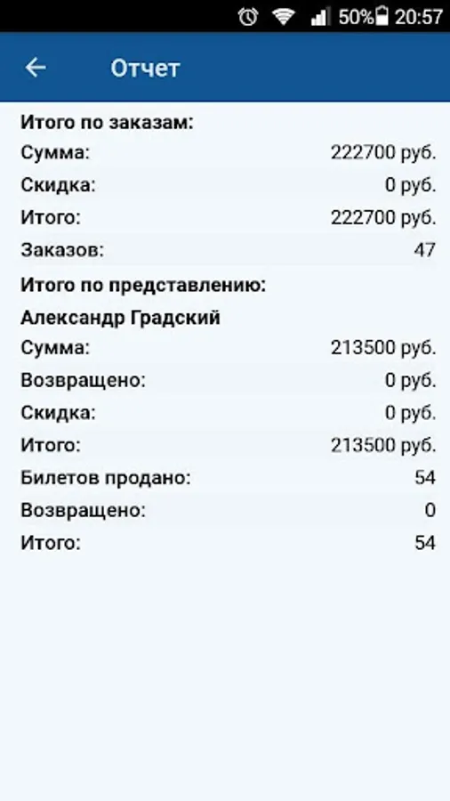 Mobile application for receiving reports from the BIL24 ticketing platform
