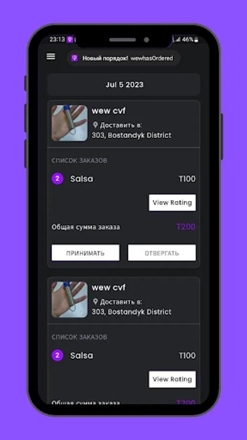 With Tres - restaurant partner, restaurants can accept and process orders, receive notifications of new orders and updates. The application provides an intuitive interface for convenient and efficient work with orders.