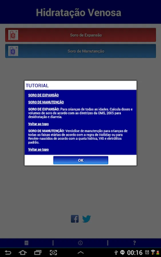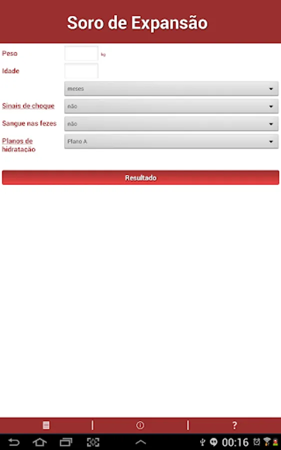The venipuncture application has now changed and called Venous hydration. The application already allowed calculate the venipuncture the universal rule of Holliday-Segar, conventionally, or using mixtures of glucose and saline solutions, according to the guidelines of most pediatric schools in Brazil and the world, now also comes with additional functionality "Expansion Soro", based on the guidelines of the World Health Organization (WHO), 2005 to the control and treatment of diarrhea and dehydration!