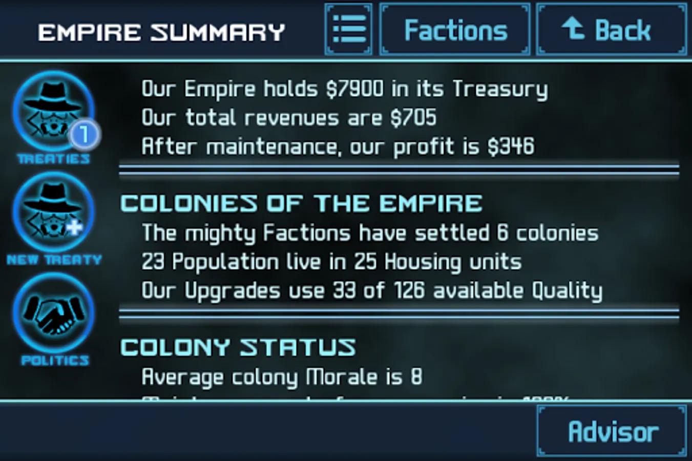 This challenging civilization-building game expands upon the universe of the original Star Traders RPG. As the leader of a splinter group who have fallen behind the main fleet, you have no choice but to settle nearby habitable worlds, stake your claim and try to prosper.