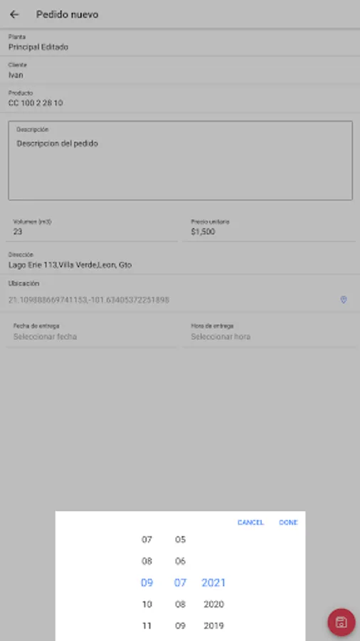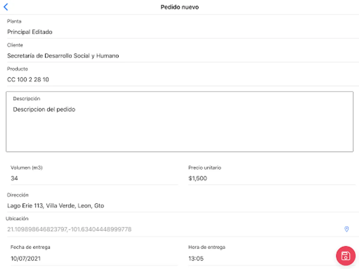 Application for registration of orders for internal personnel and specific clients of the company Masa