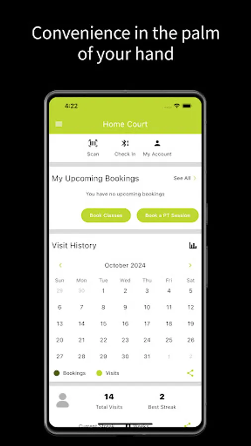Now it's easier than ever to plan your sessions alongside your schedule. Book classes & sessions on the go, keep your profile up to date and manage your memberships all within the app.
