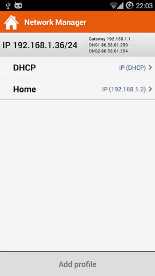 Module to configure / manage different network profiles. If you have ever needed to change the IP address of your device will have purchased android how tedious it is, even if the changes are frequent. With this module you only have to configure the profile once and will be recorded to subsequently activate your whim.