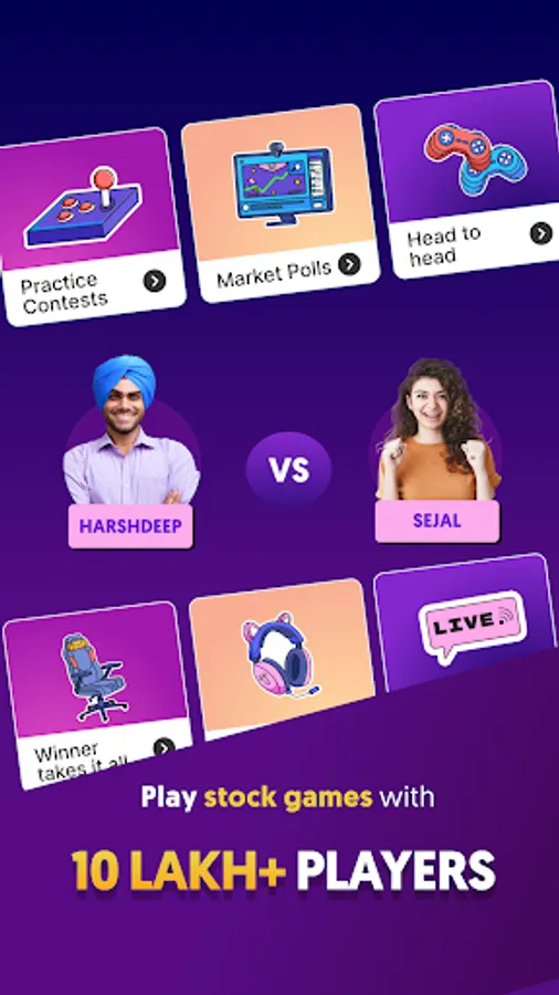 Learn Risk-Free Trading with Stock Contests, Public Polls & Other Games: Participate in daily stock contests to develop your trading skills and you can win cash prizes worth up to ₹25,000. It’s time to level up your trading skills.