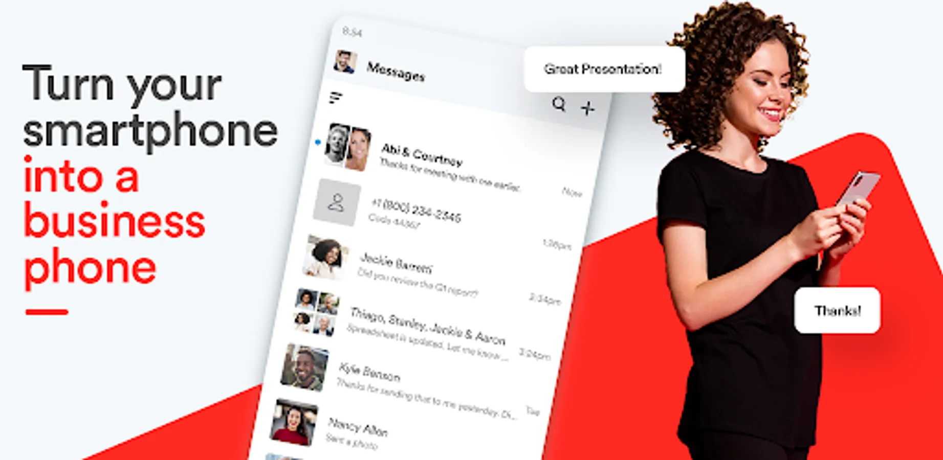 Install Tresta on your smartphone today and begin taking advantage of unlimited calling and texting on your business phone number - from anywhere.