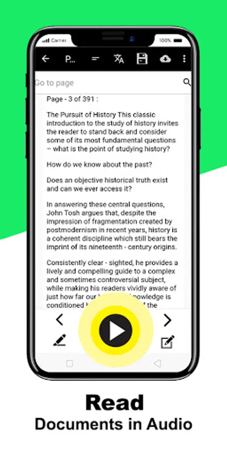 4. Read your documents: includes a PDF reader, an EPUB reader along with support to listen TXT, Daisy, DOCX files in audio. For documents scanned as image PDFs, use the OCR option to perform high accuracy text recognition and audio read-out. You can even share or download the processed document in editable formats.