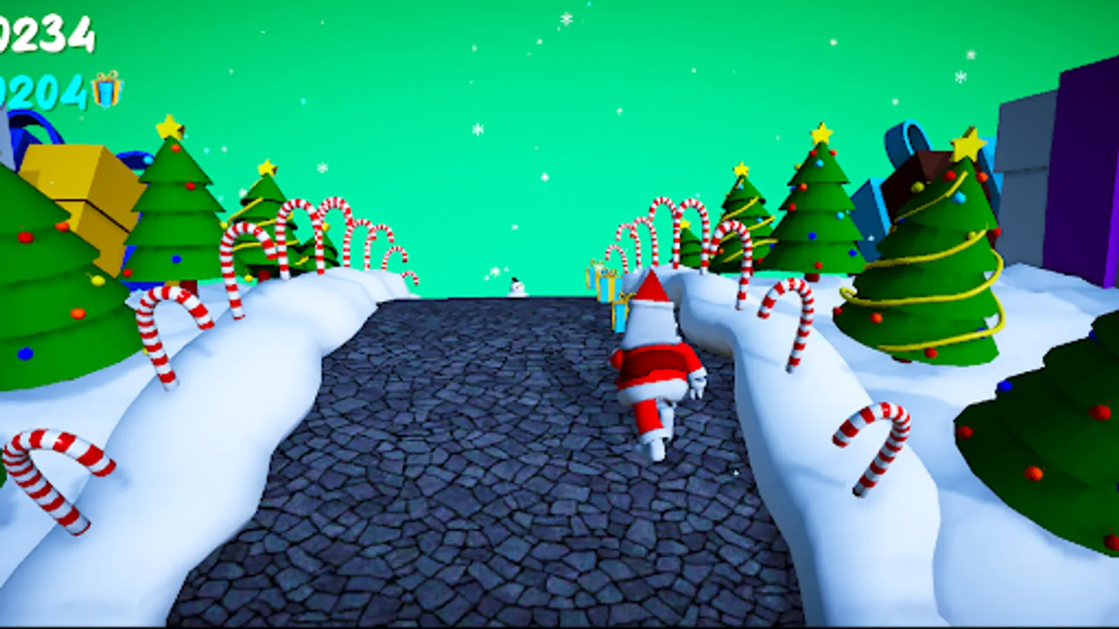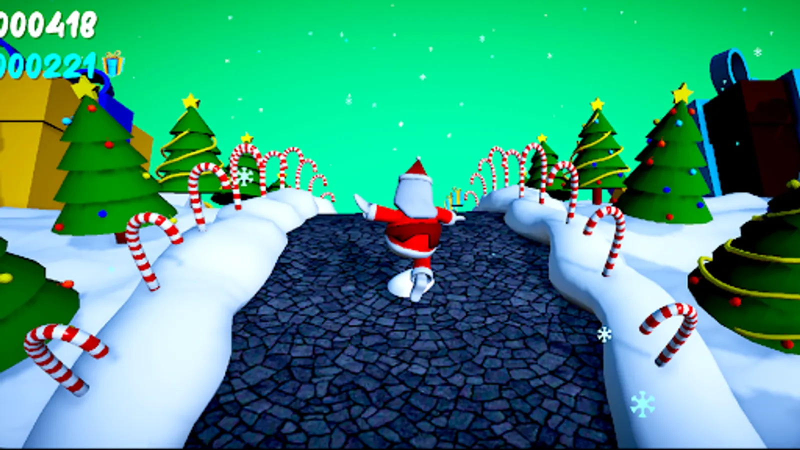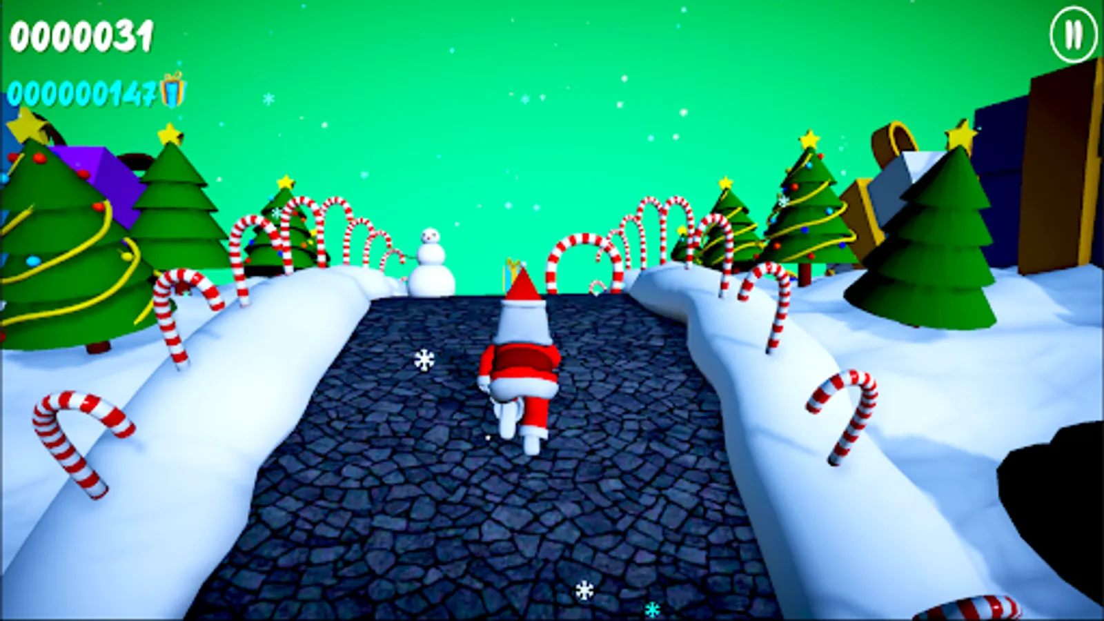 Santa Run Is Christmas Santa Endless Runner Game Where You Have To Avoid Obstacles Like Snow piles, Snowmen and Tasty Candies By Jumping Turning Or Sliding Under, Over Or By Them And Make The Best HighScore Possible While Collecting Christmas Gifts On The Path.