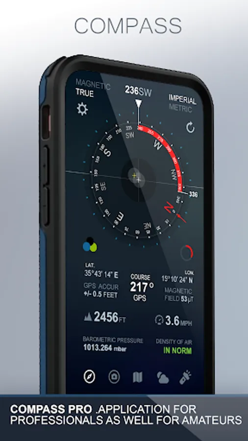 Compass is for professionals as well as amateurs! It shows device real-time orientation to magnetic fields. It displays a lot of useful information like location, altitude, speed, magnetic field, barometric pressure, etc.