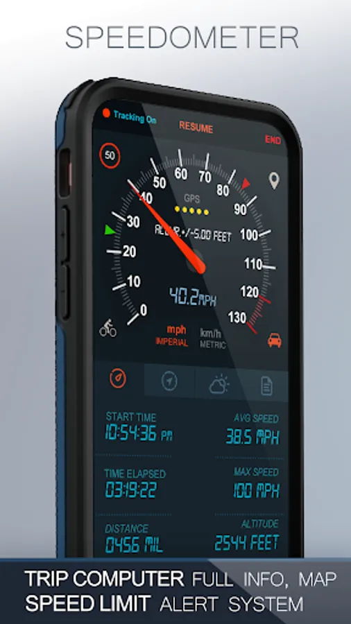 • Switch between a car speedometer and a bike cyclometer.