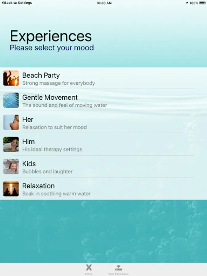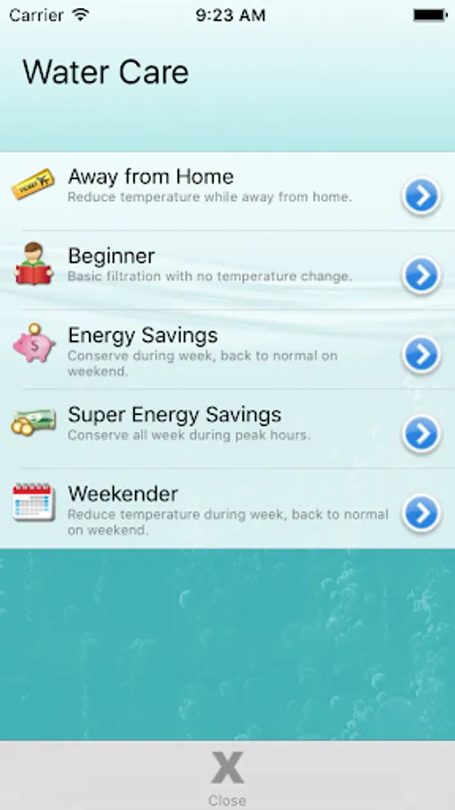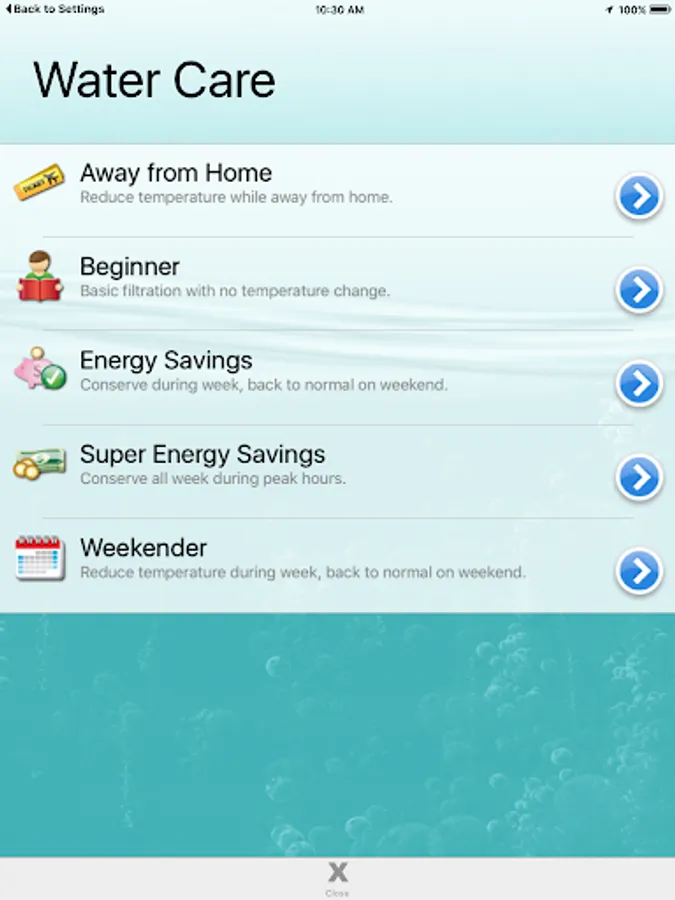 Choose the kind of user you are from Beginner, Away from Home, Energy Savings, Super Energy Savings or Weekender, and Trtévi Spa does the rest.