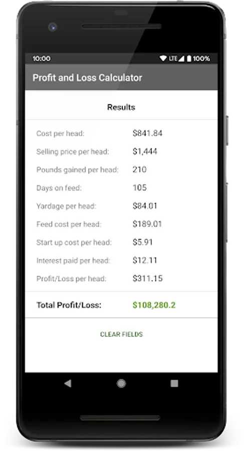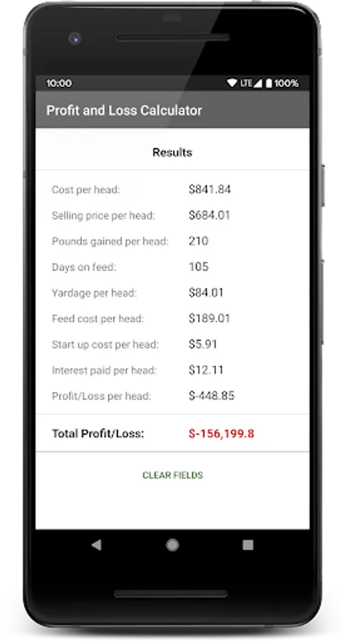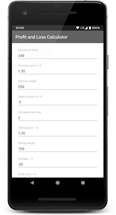 Feedlot Profit-Loss Calculator Screenshots