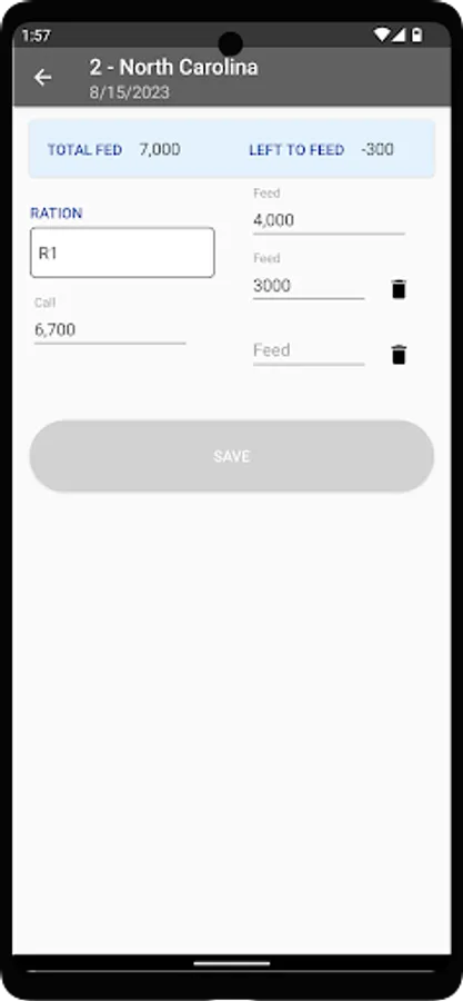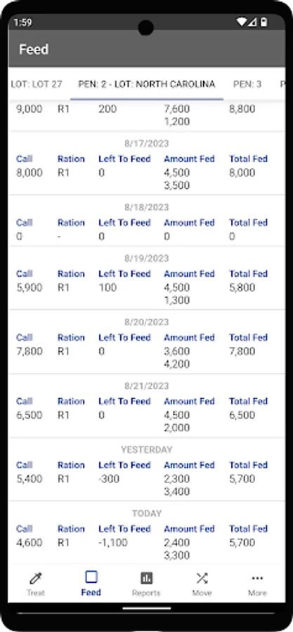 ~ Feed: Specify Bunk Call for each pen. Add amount fed each time, specifying ration.