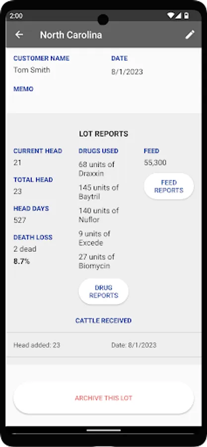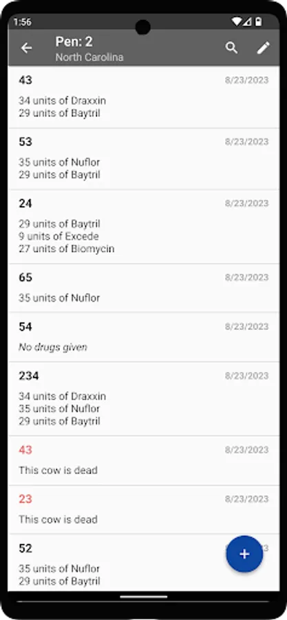~ You can keep track of medication given to cows. A report of drugs given for each pen of cattle is available to view.