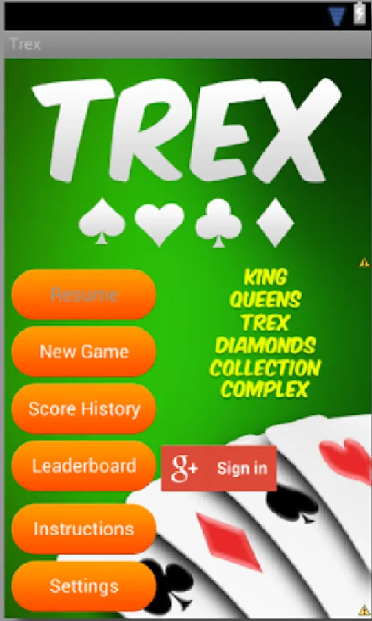 Call it Trex , Trix , Tricks, or even Treks , at the end it is the best cards game played. It is FINALLY on Android, the only and best one. It uses many strategic rules making the players very intelligent and challenging to play against. Moreover, the players don't cheat. It's all strategies and rules. It is even more intelligent and smarter than the iphone trex game.