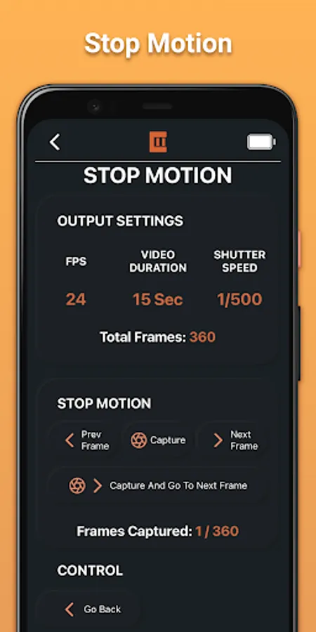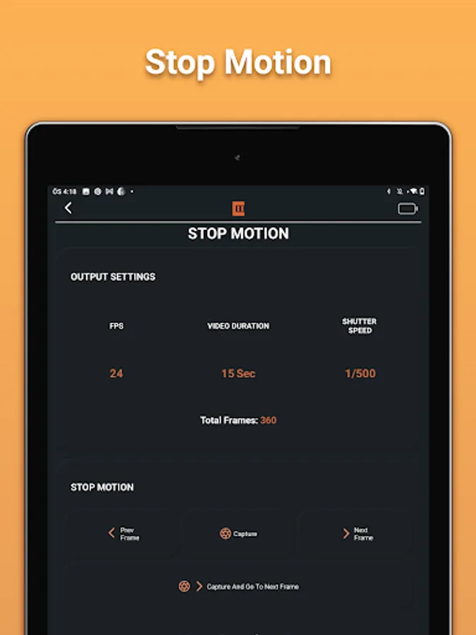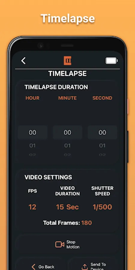 Each motion can be turned to a Time-lapse or Stopmotion shot with click of a button.