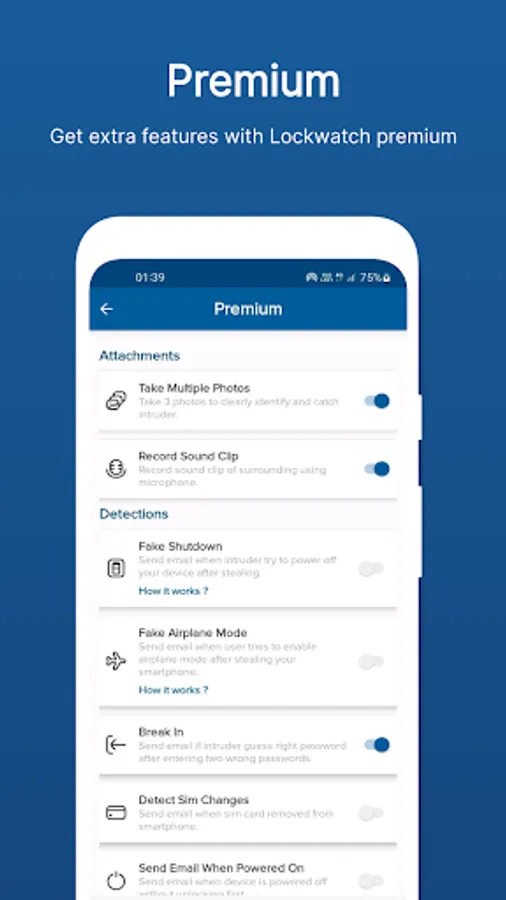 So whether someone is snooping around or your smartphone get stolen, It will Track & take intruder selfie to get your smartphone back to you. Anti Theft comes with ultimate handy settings and premium features.