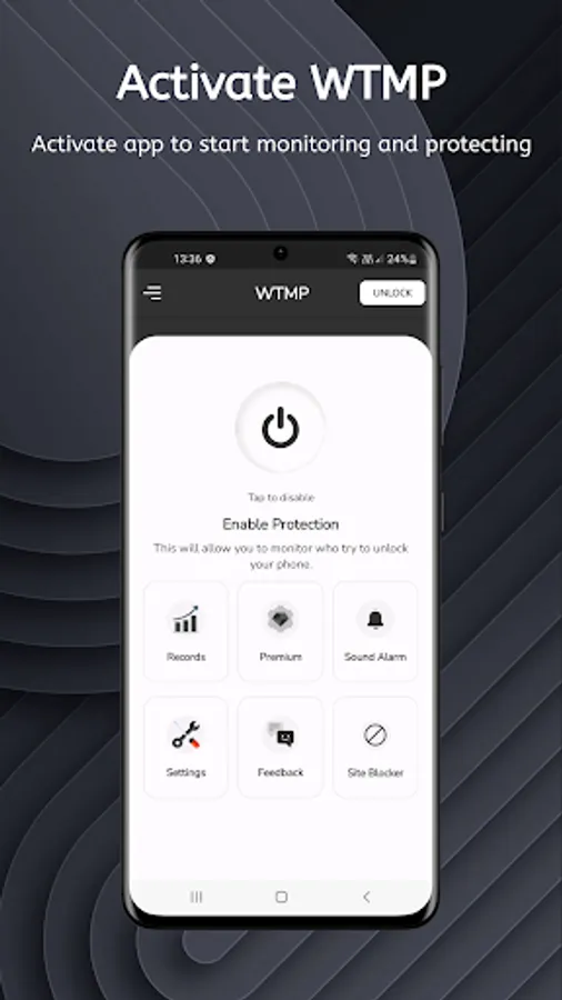 • WTMP use Device Admin Receiver to monitor pin or pattern attempts if someone tries to open your smartphone.