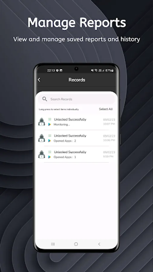 • Maintain list of detailed records which include (intruder image, opened apps , date/time etc).