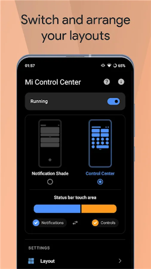 Mi Control Center is a unique phone customizer and it will change the way you use your device. Personalize your phone to MIUI or iOS design easily with a powerful control center!
