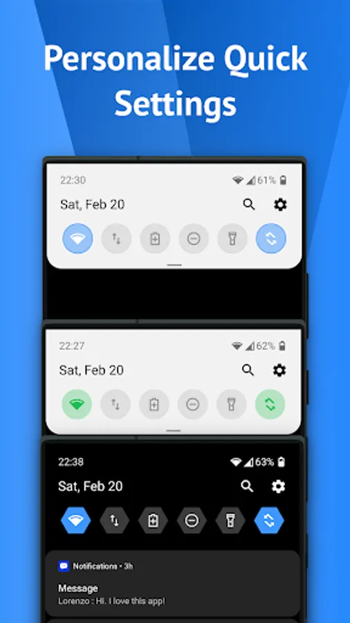- Choose a different color for the background or foreground (icons) of the quick settings panel.