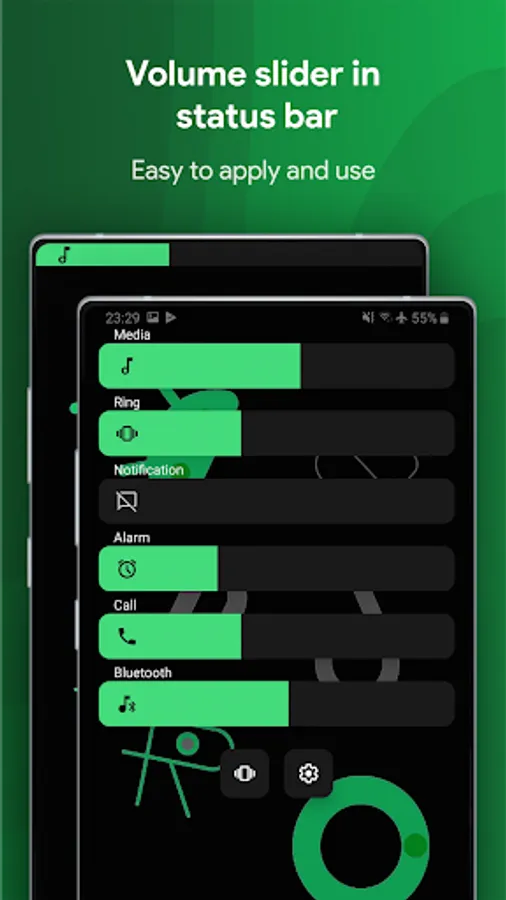 Personalize your device’s UI with a custom volume control panel. Quick setup and smooth controls. Design a custom volume slider or use some of the volume control panel cool skins available in the app!