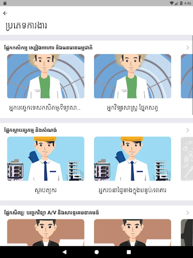 Mobile applications that do not require an Internet connection on the advice of the work is a valuable tool that can provide the necessary knowledge and information to set goals and make plans for the future. Each student can create a personal account to log in to the application, which can identify the strengths and weaknesses of their search for employment in the country and watch videos about different jobs. Finally, students are able to identify and choose a career that has the potential for their future.