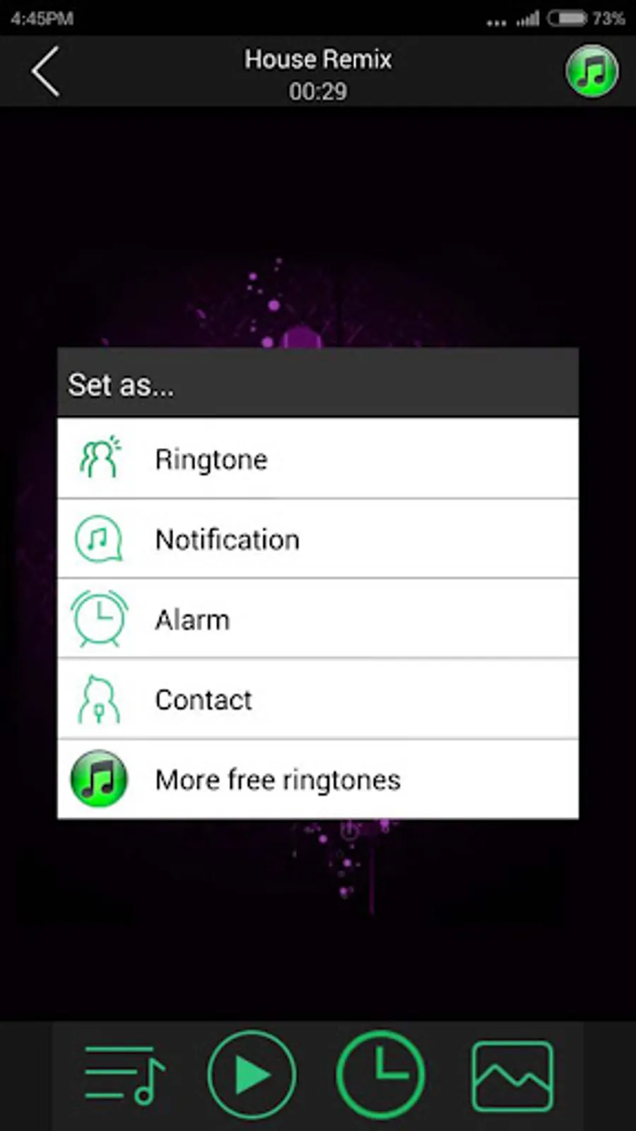 If you like one of the MP3 music you can set it as your default phone ringtones, alarm or notification.
