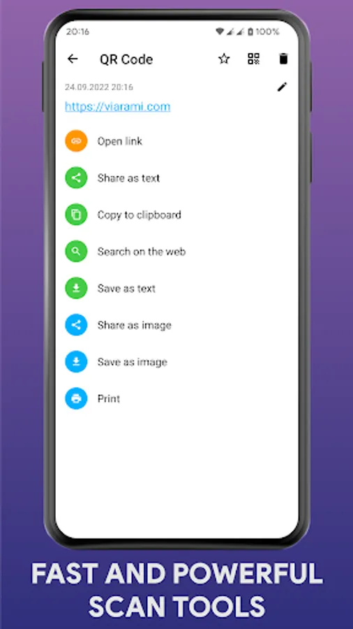 All your scanned results will be included in the scan history, and you also can share the scanned results to friends or add to your favorites.