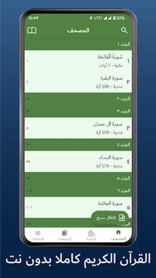 Al Quran Free - القرآن الكريم is a genuine Islamic application to create flow in your worship time. All Muslims Quran Shareef is a free Holy Quran reading pro for a good day starts, atonement of sins and attainment of blessing. The strong connection with Quran Kareem is the route way, leading to bestowments and Allah’s mercy. Recite Quran Sharif with real feeling, just like an actual Quran in your hand.