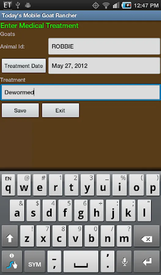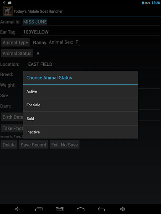 Today’s Mobile Goat Rancher works as a stand-alone product or when used in conjunction with Today’s Rancher Desktop and Today's Goat Rancher. This provides the modern goat breeding operation with a complete solution for ranch asset management. It will also synchronize data with our Today's Goat Rancher - Online Cloud Edition (subscription required)
