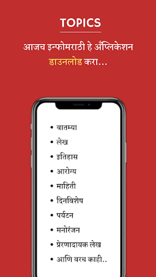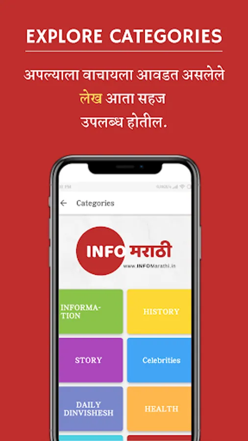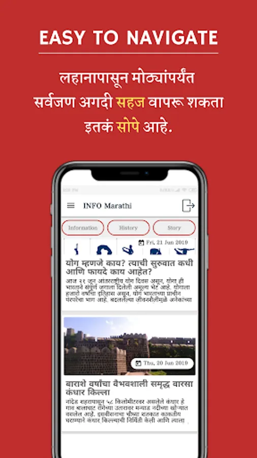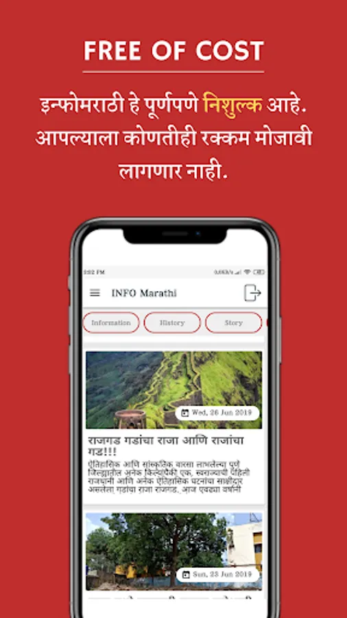 InfoMarathi works to convey the best quality Marathi articles to Marathi readers. In this free application you will find lots of articles based on history, information, health, castles, tourism and latest news and it is from your mother tongue.