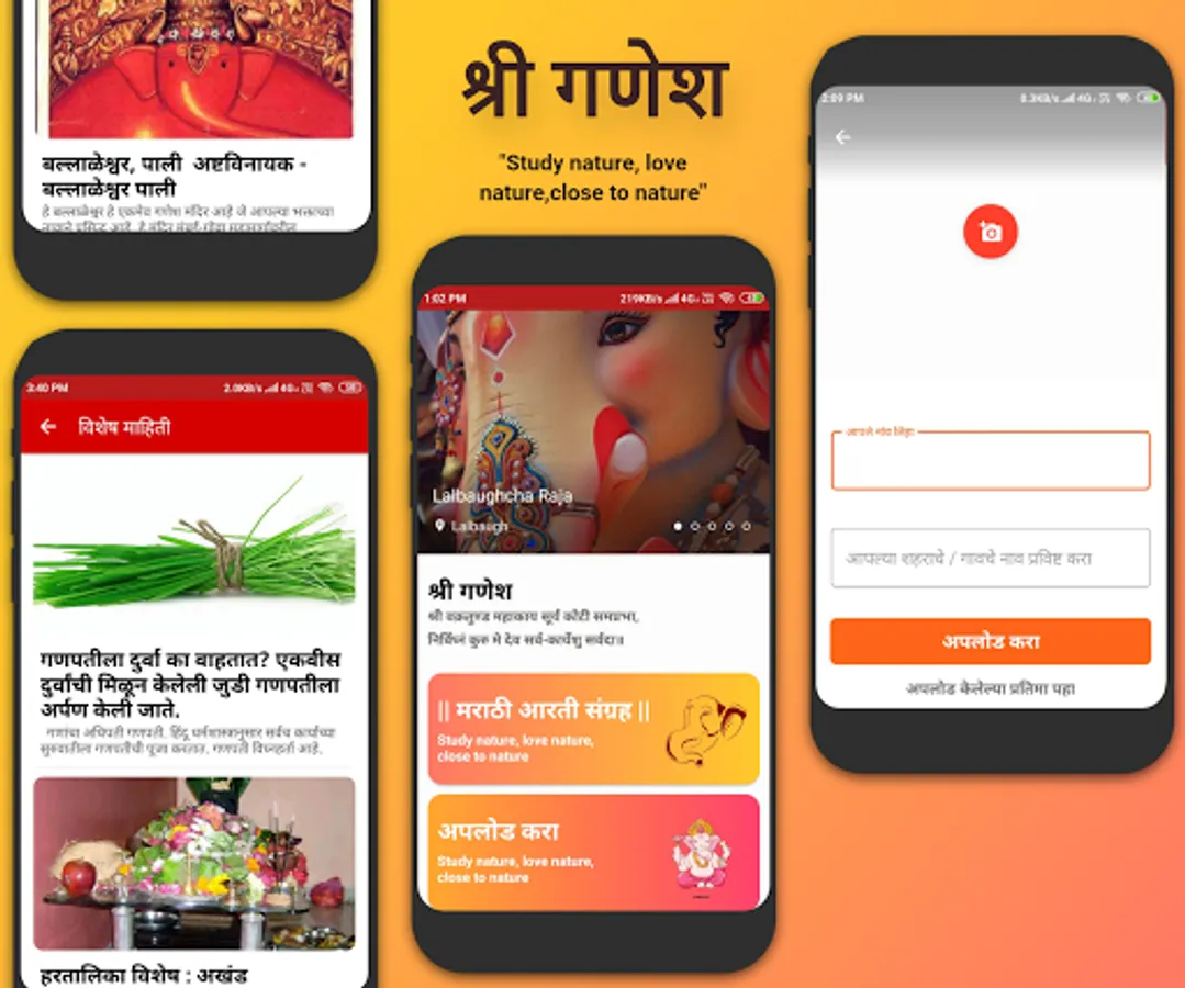 श्री गणेश अॅपमध्ये वापरकर्ता गणेशाची प्रतिमा अपलोड करू शकतो आणि एकाधिक अॅपमध्ये एकाधिक पोस्ट म्हणजे वेगवेगळ्या वापरकर्त्याच्या गणेशाच्या प्रतिमा पाहू शकतो.श्री गणेश अॅप श्रीगणेशा बद्दल नवनवीन माहिती आपल्याला वेळोवेळी दाखवेल.