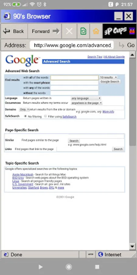 Surf the web using 90's Browser and explore deep treasures from the internet of the Past!