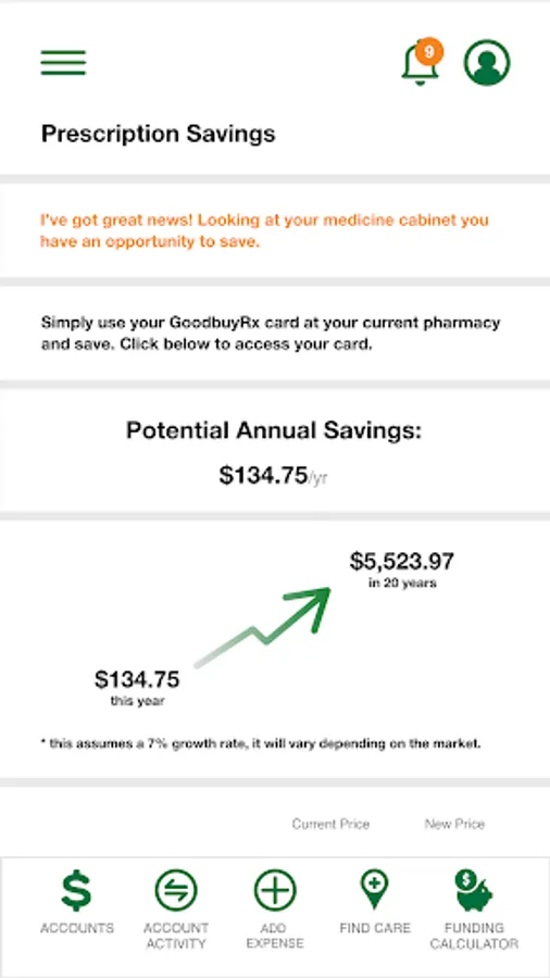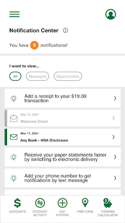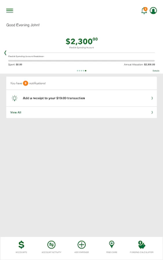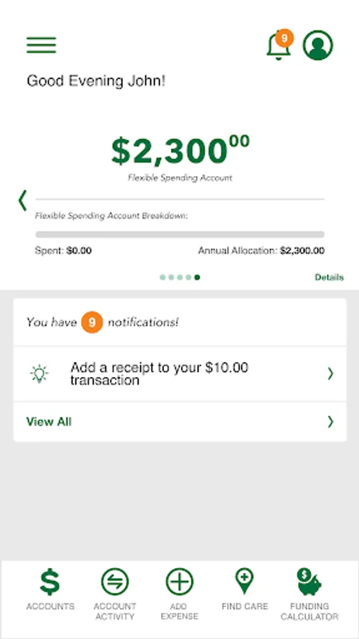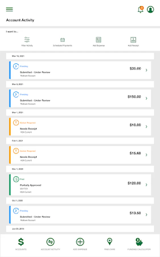 • Accounts: View your benefit accounts and transaction details