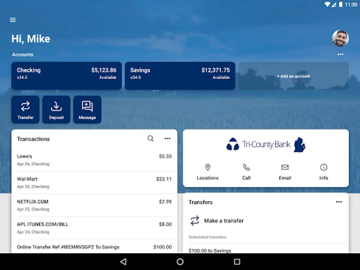 My Tri-County Bank is your personal financial advocate. It’s fast, secure and makes life easier by empowering you with the tools you need to manage your finances.