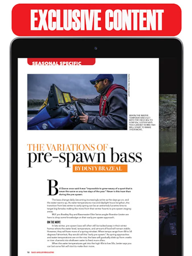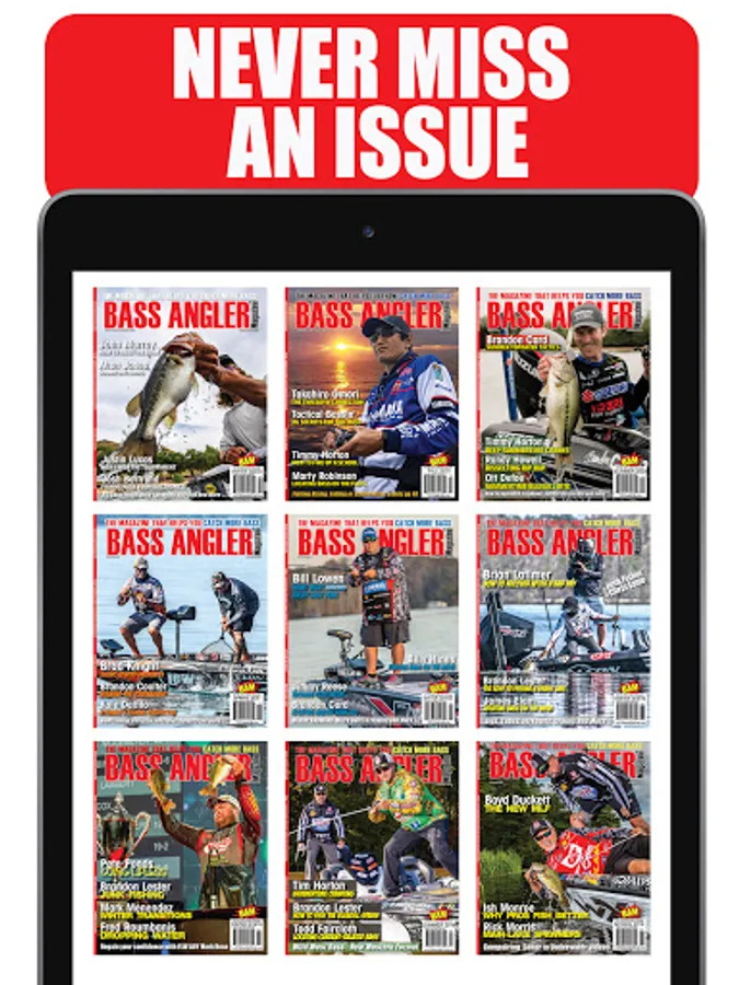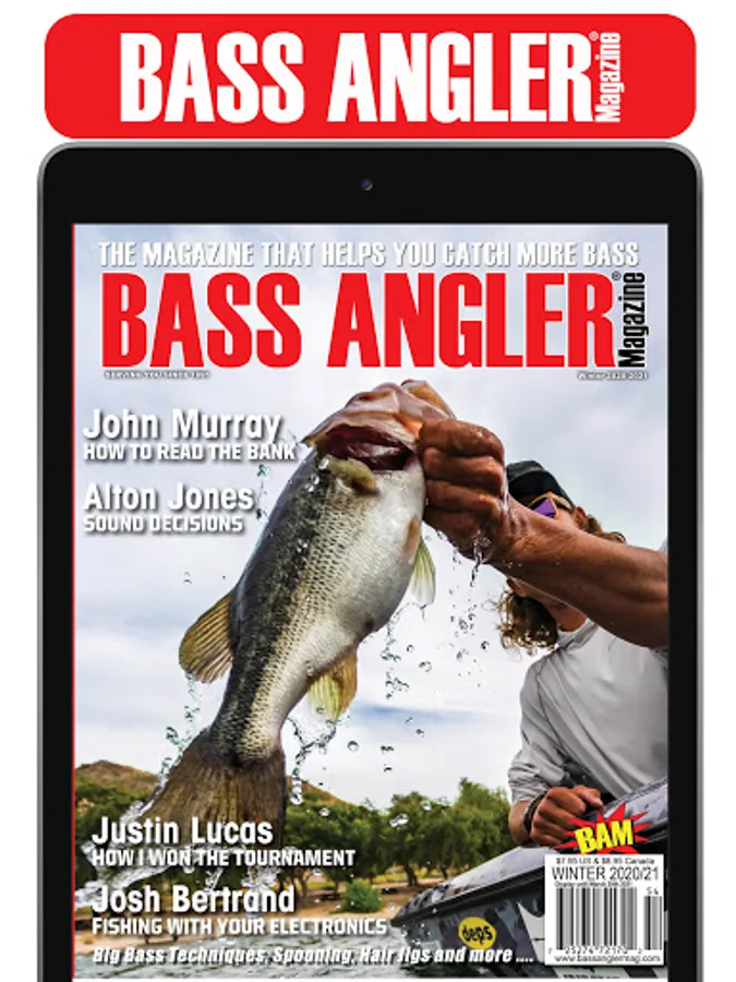 BASS ANGLER MAGAZINE (BAM), a veteran owned quarterly magazine covering largemouth, smallmouth, and spotted bass, Bass Angler was created specifically to help you become a better, more informed bass fisherman. As the industry’s most informative bass fishing magazine, we provide you in-depth exclusive new features with the world’s top anglers. Each issue of Bass Angler is filled with 25 or more full length articles uncovering the latest secrets from the world’s top anglers. We think you'll agree Bass Angler Magazine is the one fishing tool you shouldn't be without.