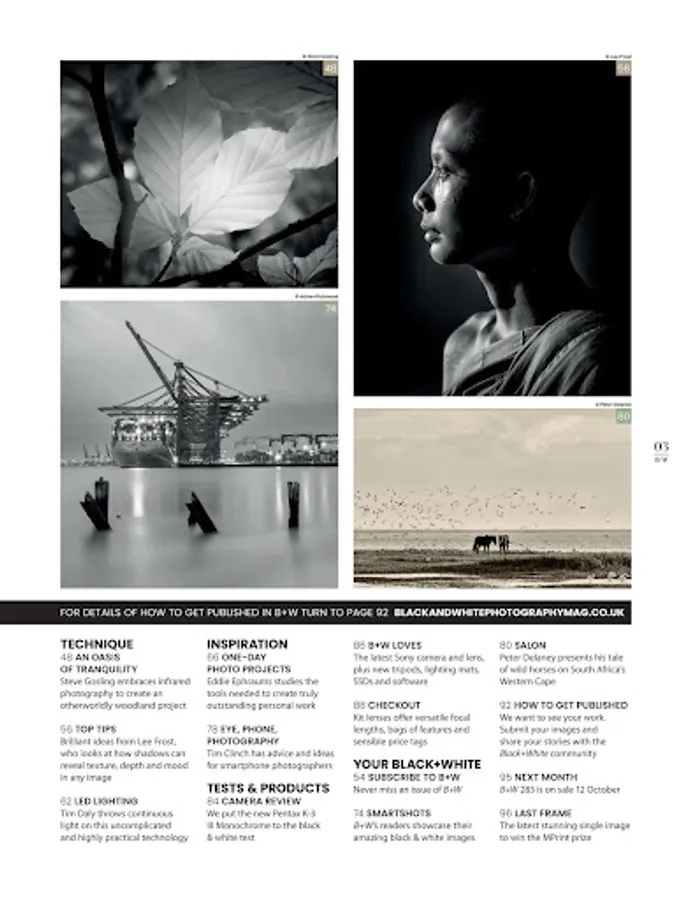 Black + White Photography magazine is the champion of the B&W image; every issue includes: